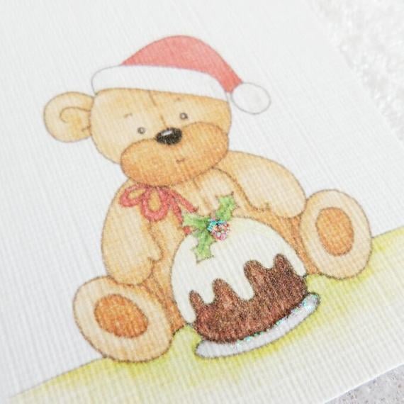 These Christmas pudding bear gift tags have been designed using my own original watercolour illustration. I have designed them to match and compliment my handmade cards in the same design.