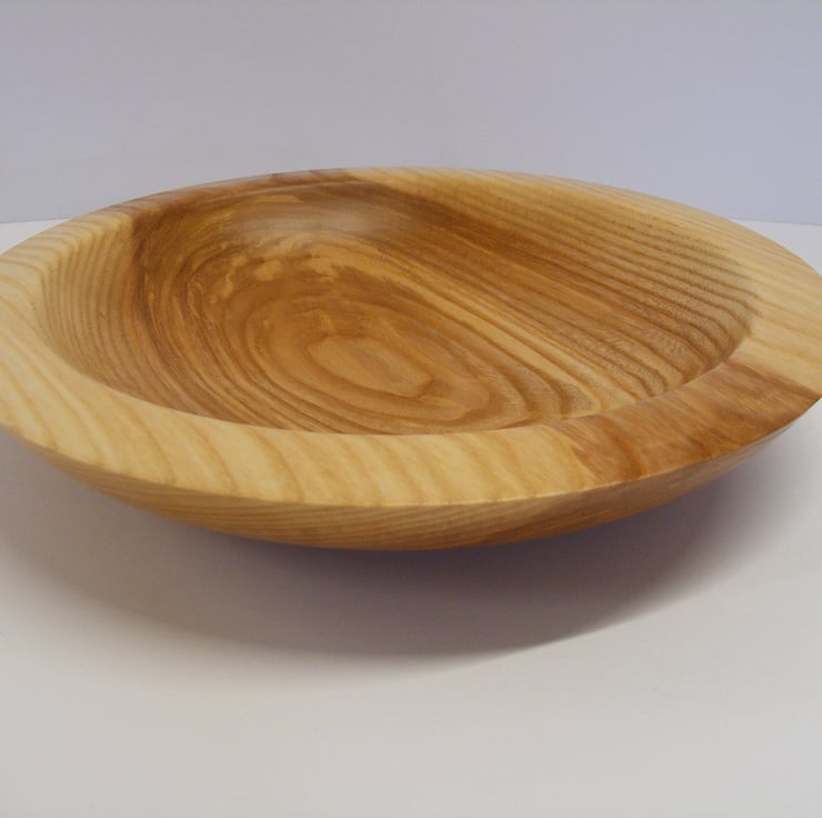 Shallow Ash salad bowl 243 x 43mm. Finished in food safe oil.