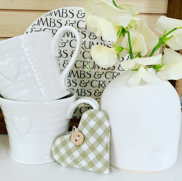 These pretty little lavender hearts are handmade in my summerhouse studio in Hampshire.