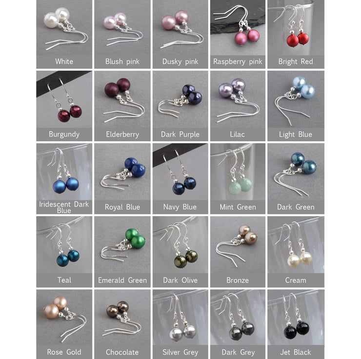 All of the metal elements used are Sterling silver. Each earring drop measures 14mm from the bottom of the ear hook. I will include a pair of plastic stoppers to ensure your earrings remain securely in place.