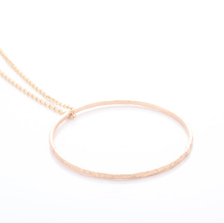 Hand made Gold Filled Necklace with Circle Pendant is made from 16 gauge (1.30mm) 14K Gold Filled wire, hand forged and textured, then polished for a shiny finish. The pendant is approximately 30mm (1 1/4 inches) diameter.