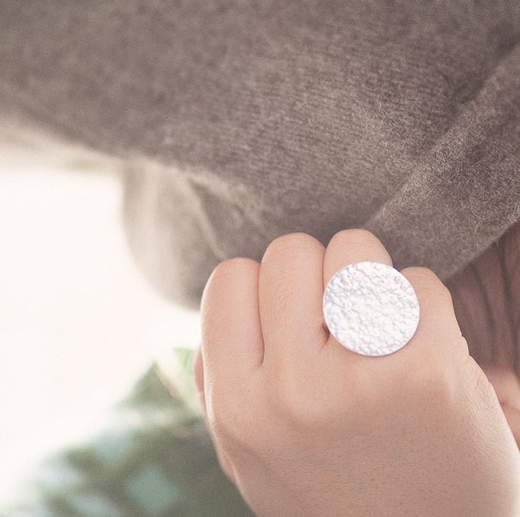 Handmade 925 Sterling Silver Disc Ring is made from 18 gauge (1.0mm) Sheet for the disc with an approximate diameter of 28mm (1 1/8 inches) and 10 gauge (2.5mm) wire for the band. The disc is hand cut and textured for a more organic shape and feel. The ring has been tumbled for strengthening and a polished, smooth finish.