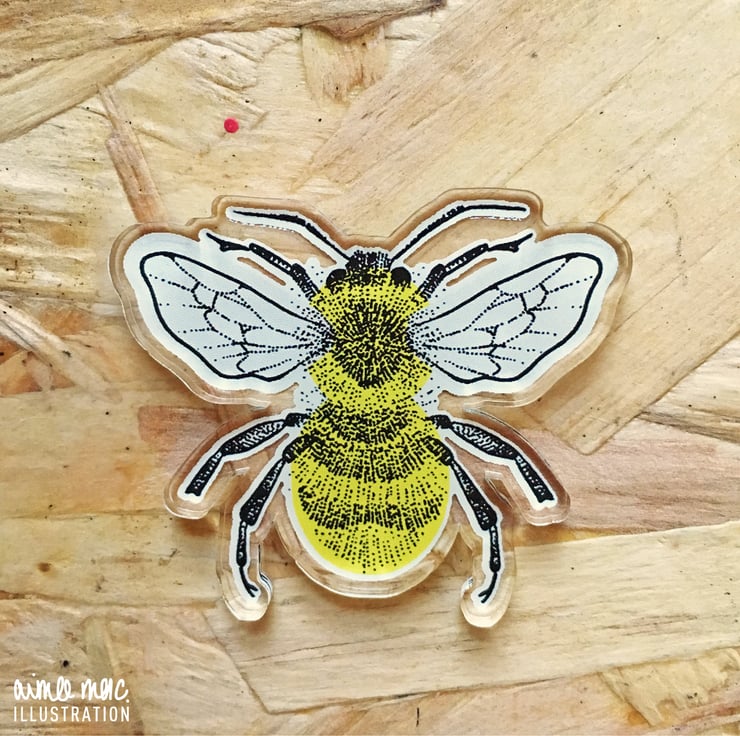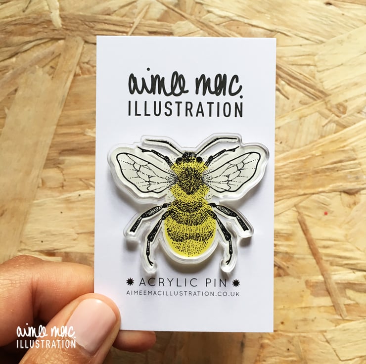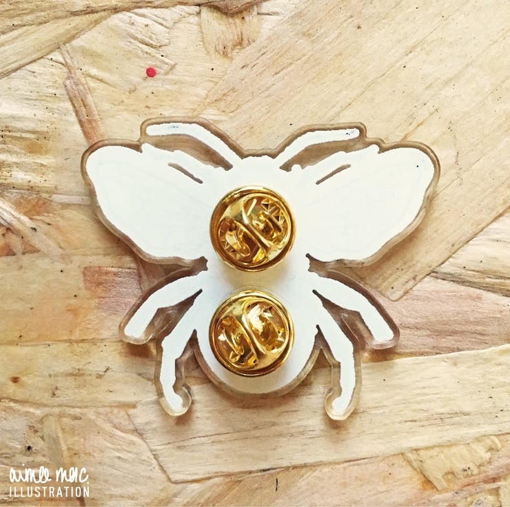Super cute crystal clear acrylic Bumble Bee pin brooch! Made from my original hand drawn illustration.