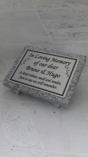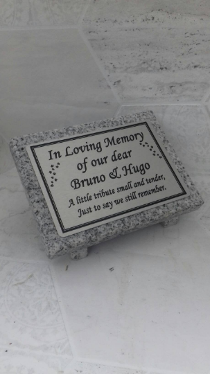 This listing is for polished high quality granite, silver in colour. Pet memorial Granite Plaque
