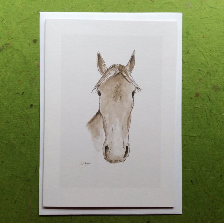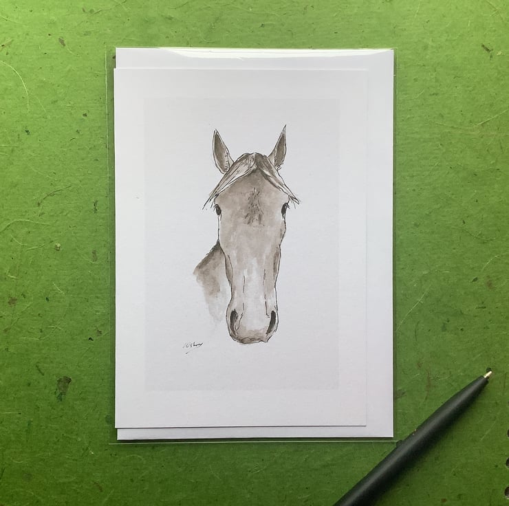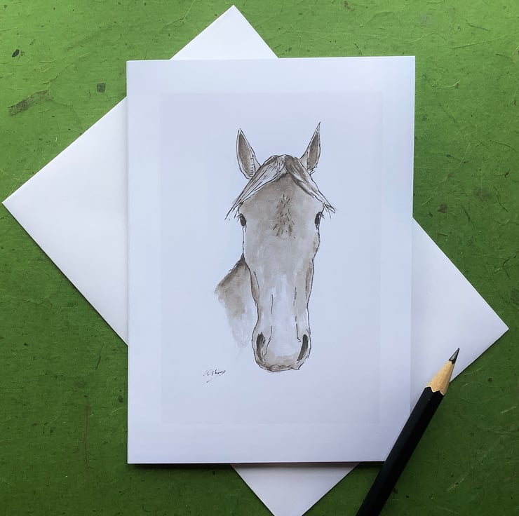 Card featuring a print of my animal drawings - a horse. Blank inside for your own greeting or note. Perfect for anyone who loves horses and animals.
