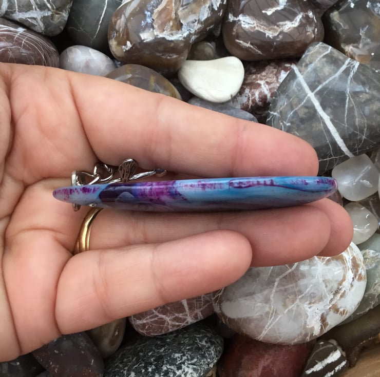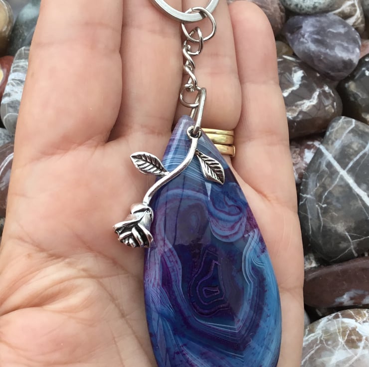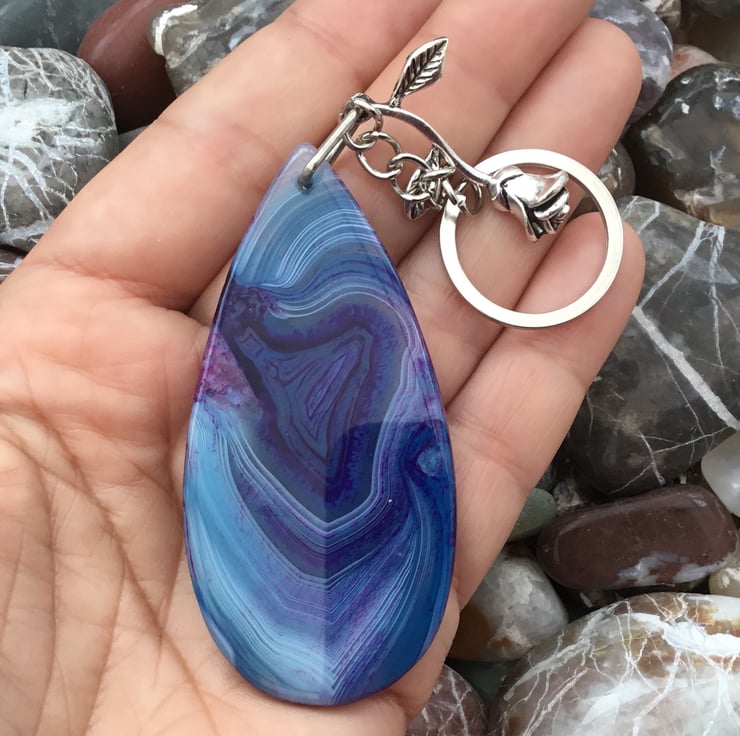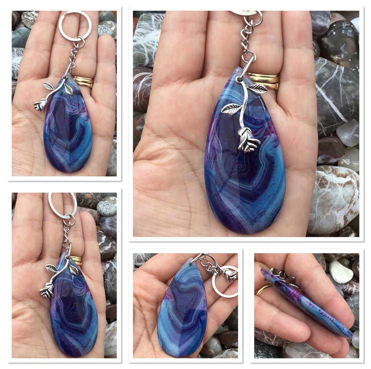 This stunning Agate pendant bead is something which should be on show so I thought it would make a fantastic keyring, or handbag charm for any lucky lady. If you wanted to buy a gift as a token of love, or friendship, then this would be ideal. Equally, ideal for anyone who just loves Agate and blue and purple tones.