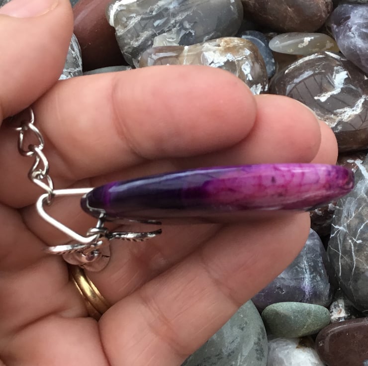 This stunning Agate pendant bead is something which should be on show so I thought it would make a fantastic keyring, or handbag charm for any lucky lady. If you wanted to buy a gift as a token of love, or friendship, then this would be ideal. Equally, ideal for anyone who just loves Agate and pink and purple tones.