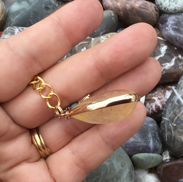 I just adore golden Rutilated Quartz as a Gemstone always has such internal life. I know there are Rutliated gemstone out there, so this would make a wonderful gift for any Gemstone enthusiast. Gemstone Key rings, or handbag charms are a real joy to make and a pleasure to own.