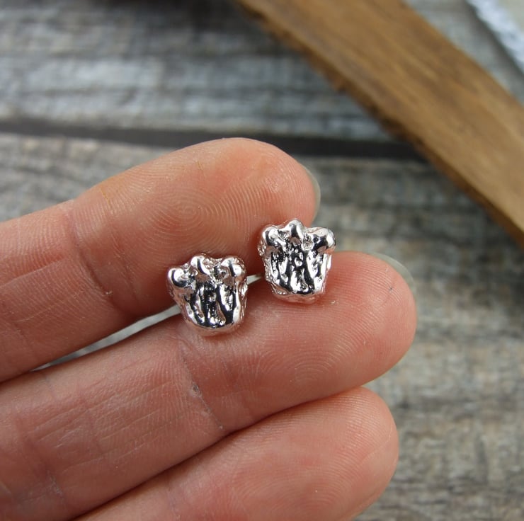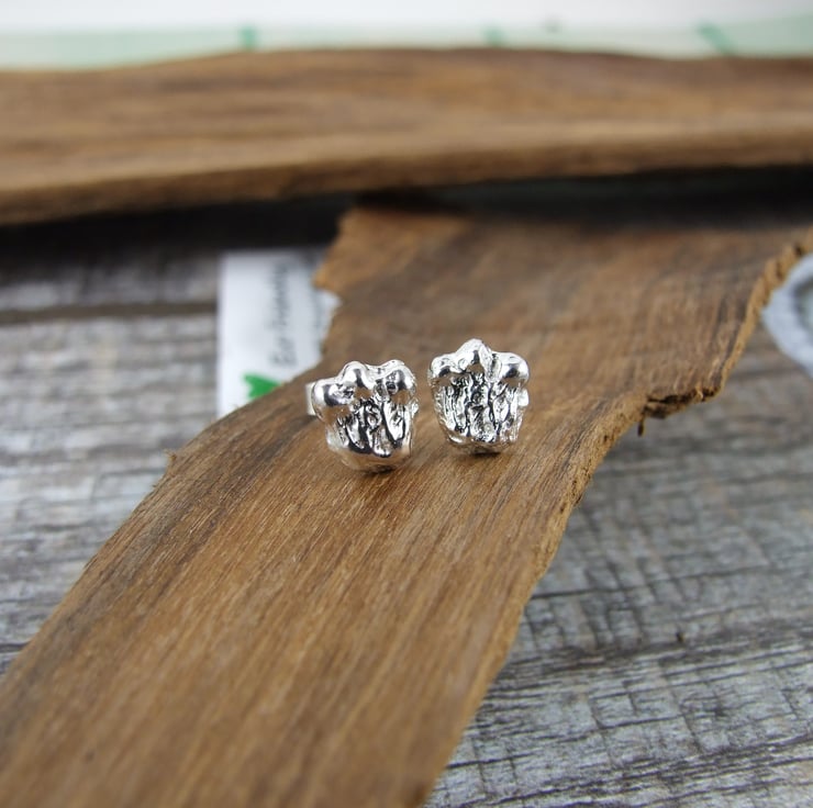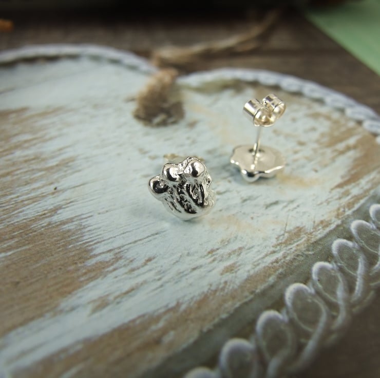 Sterling Silver Rabbit Footprint Studs. Recycled limited ediction, only 2 pairs cast by hand.