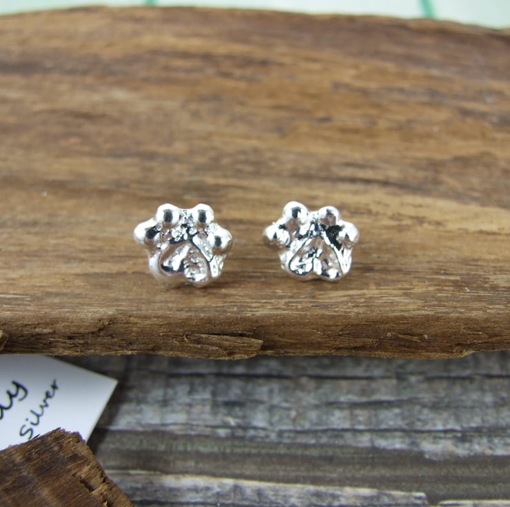 Sterling Silver Paw Print Studs. Recycledlimited ediction, only 2 pairs cast by hand.