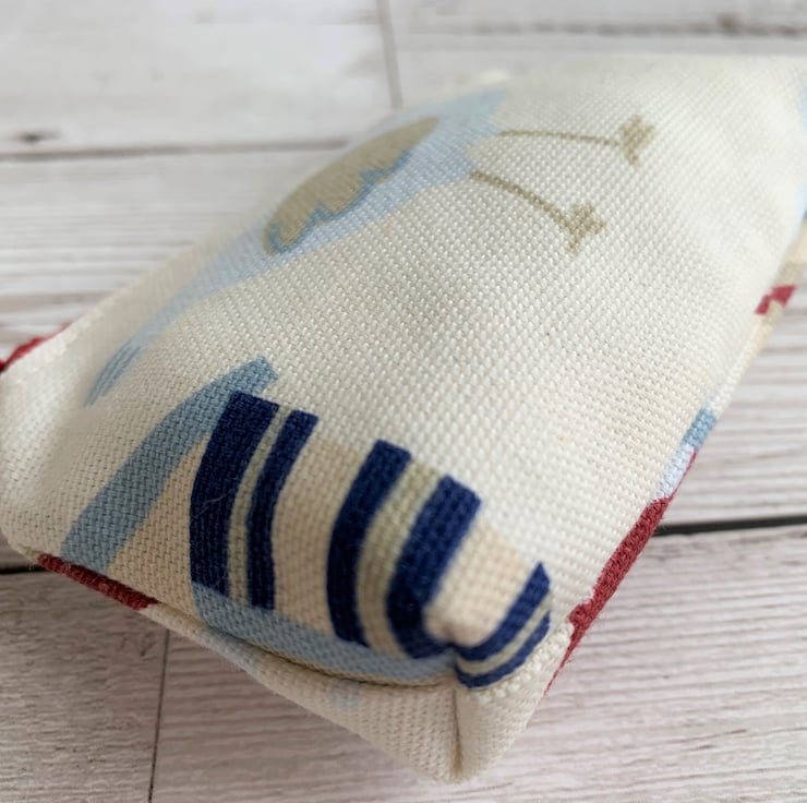 This lovely little coin purse will fit into the smallest of handbags but is just large enough to hold cash and a bank card and would also hold a lipstick. The purse, with its cute seagull and nautical colours would make a lovely gift, particularly for anyone who loves holidays at the seaside.