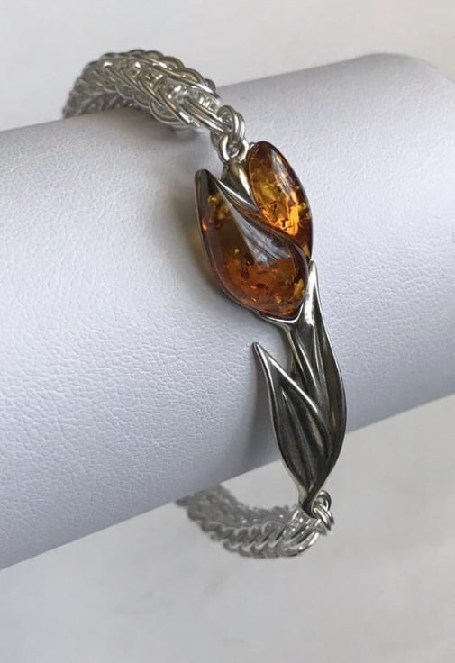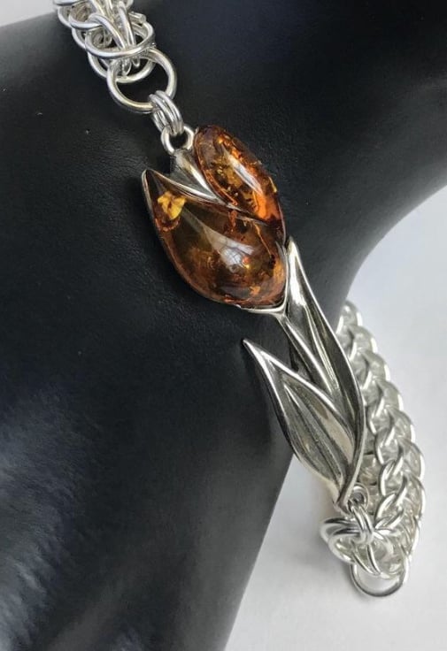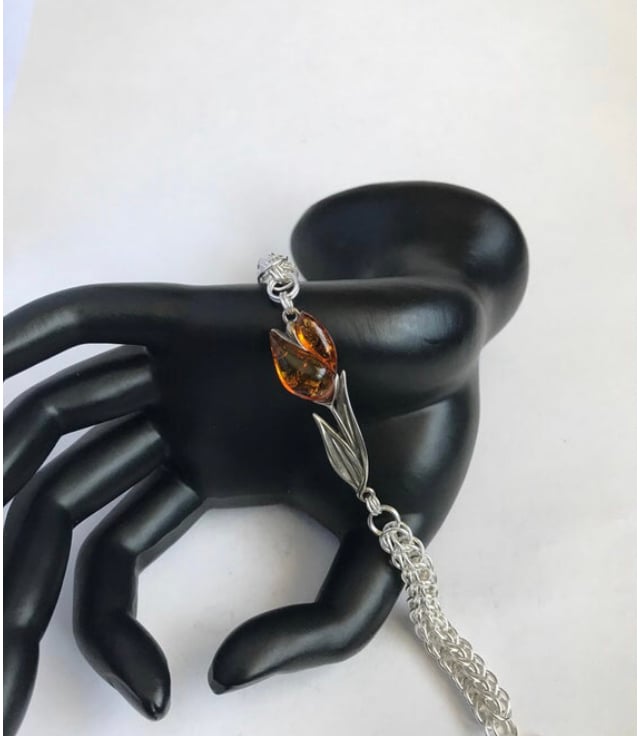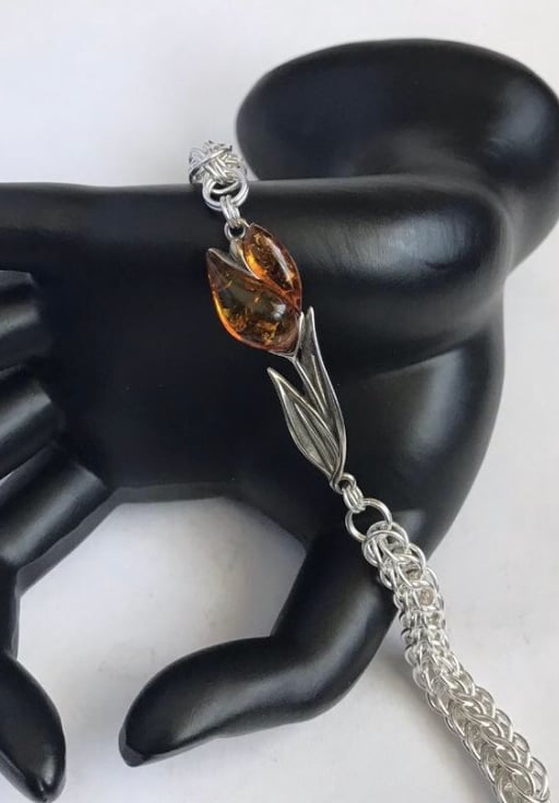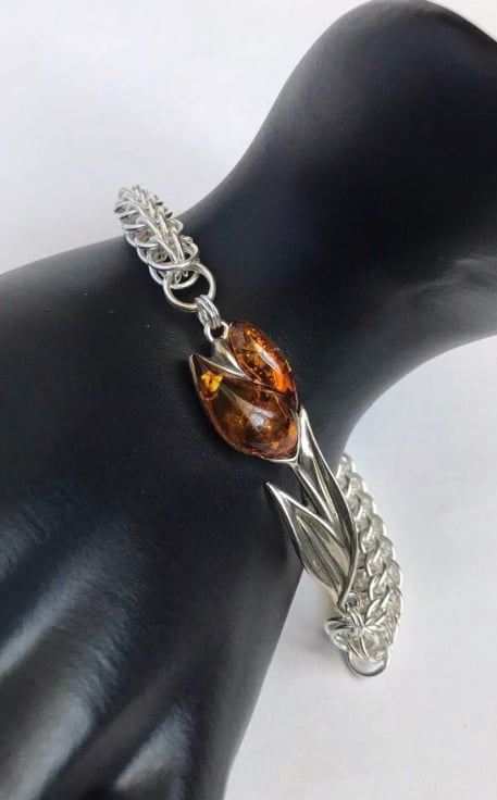 I needed to do something special with these Baltic Amber Sterling Silver Tulips and pairing them with Chainmaille seemed the perfect choice when designing this bracelet