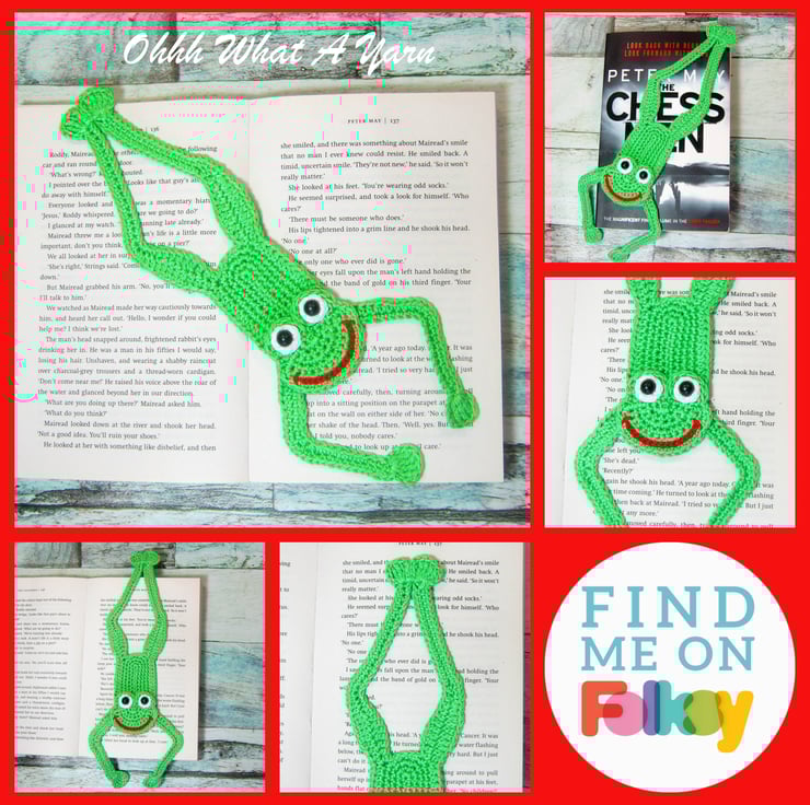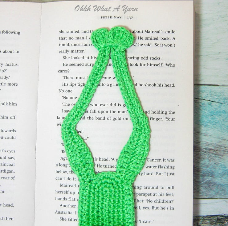 This gorgeous frog bookmark was made as part of my now quite large range of animal crochet bookmarks.