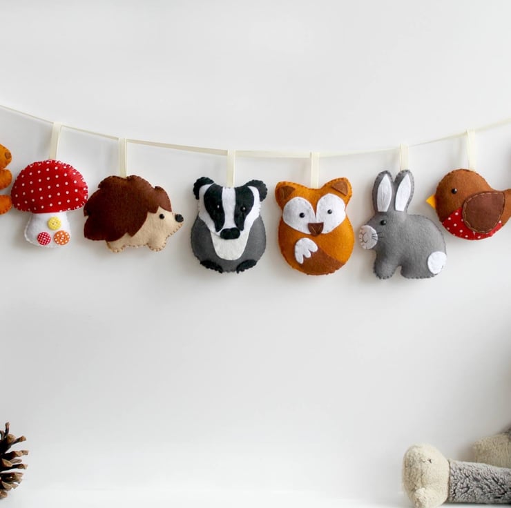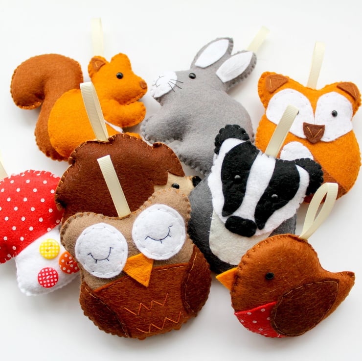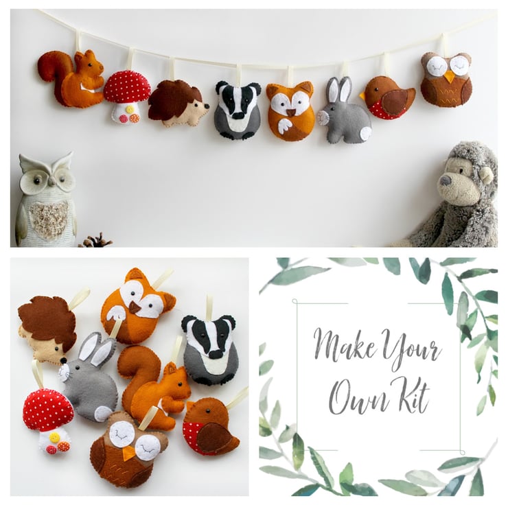 This kit provides full instructions, numbered templates and materials to create your own 8 piece felt woodland garland. Stuffing is an additional listing if you would like to add it to your order. Look in the shop for stuffing and a variety of felt craft kits.