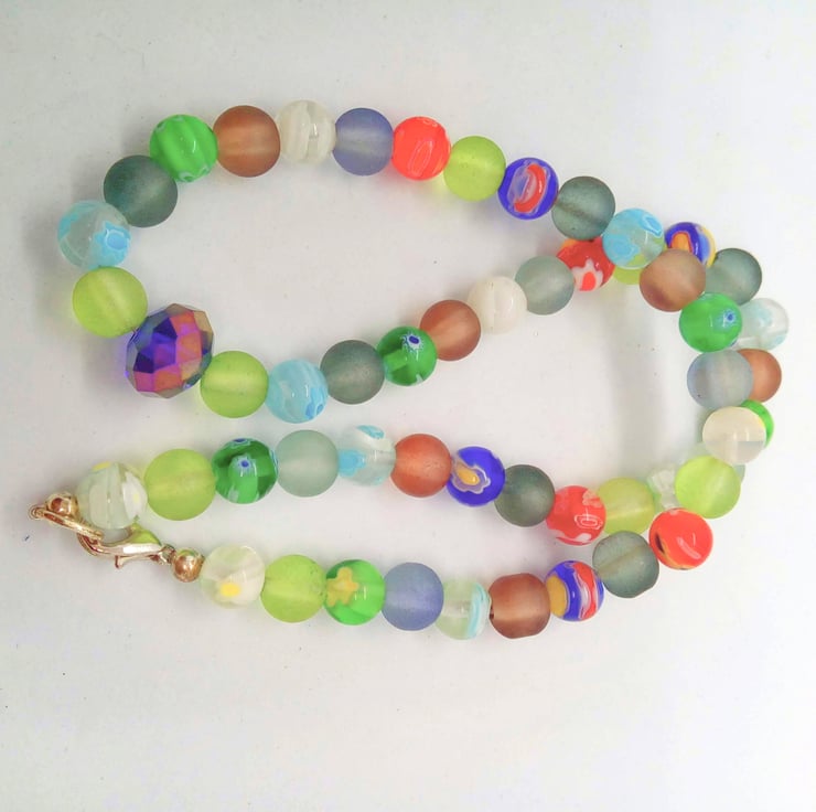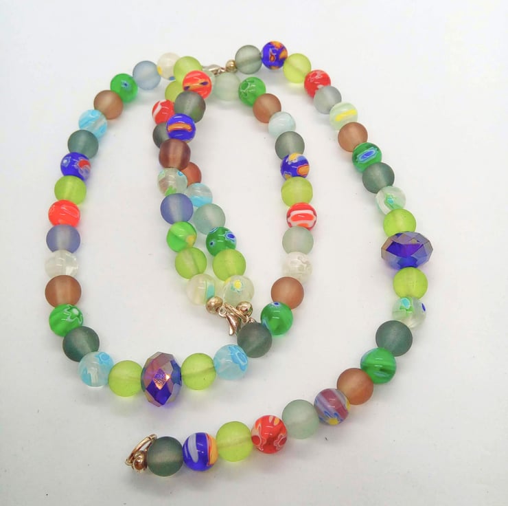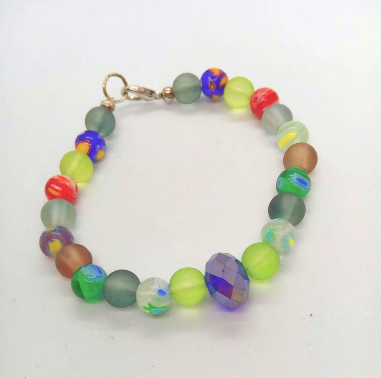 Multi Colour 2 Piece Millefiori Beaded Jewellery Set, Necklace, Bracelet, Ladies Accessories, Birthday Gift, Anniversary Gift, Gift for Her