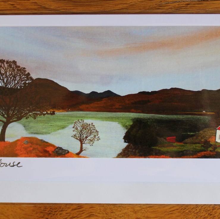 A hand made card with a print of an original artwork, painted on slate, by Hannah MacIver