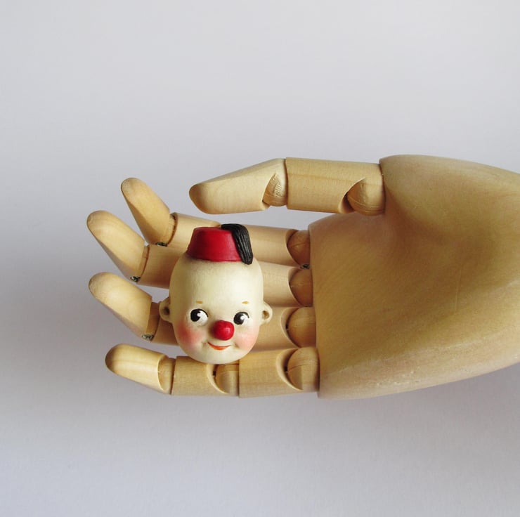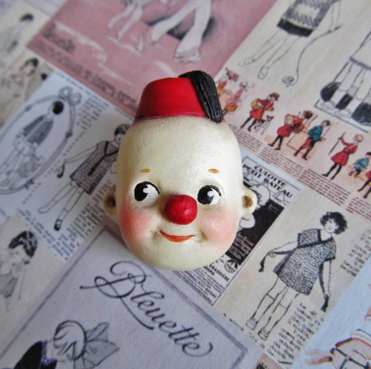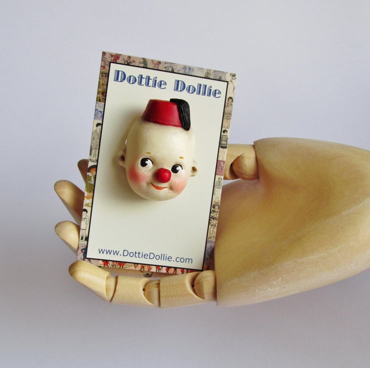 I added a fez and a red clown's nose to this cheeky Kewpie, so he could bring a big smile to your face.