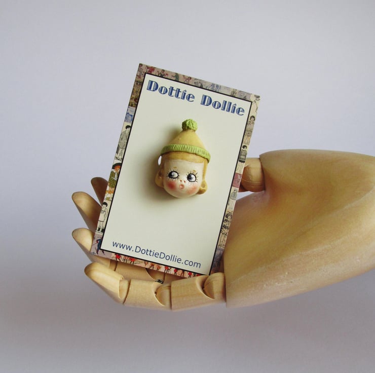 Dottie Dollie - Betty Peek a Boo Doll Brooch is a handmade replica of a real broken antique doll head from my collection.The original head is dirty and unloved, having been discarded and buried as rubbish almost a hundred years ago.