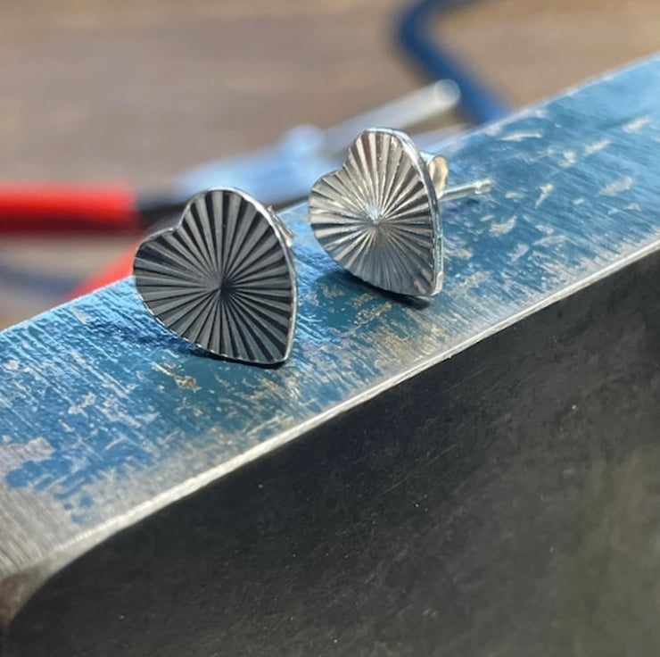 A lovely pair of sparkly patterned ear stud earrings handmade from 925 sterling silver.