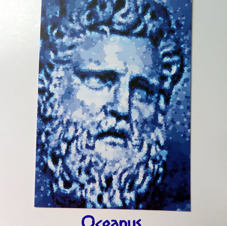 Oceanus: the Titan god of the seas and rivers. His image is made as if composed of thousands of 'water droplets'.