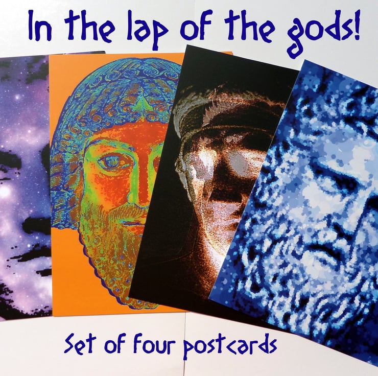 These postcards have been created from my original photography. Each image has then been digitally manipulated to produce one of my digital imaginings; representing four Greek gods. In each case I have tried to give the god's image aspects of his mythological attributes or character.