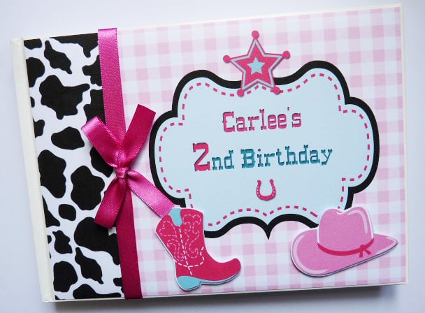 Cowgirl Birthday guest book, girl rodeo birthday party book, gift