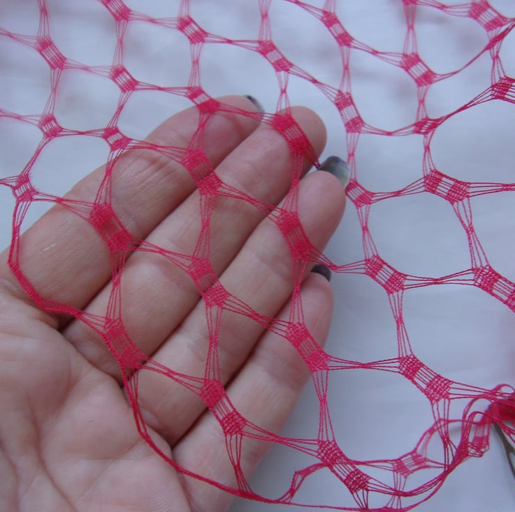 This is a bandeau birdcage style veil made from a soft narrow waffle weave millinery veiling, popular with the couture designer milliners.