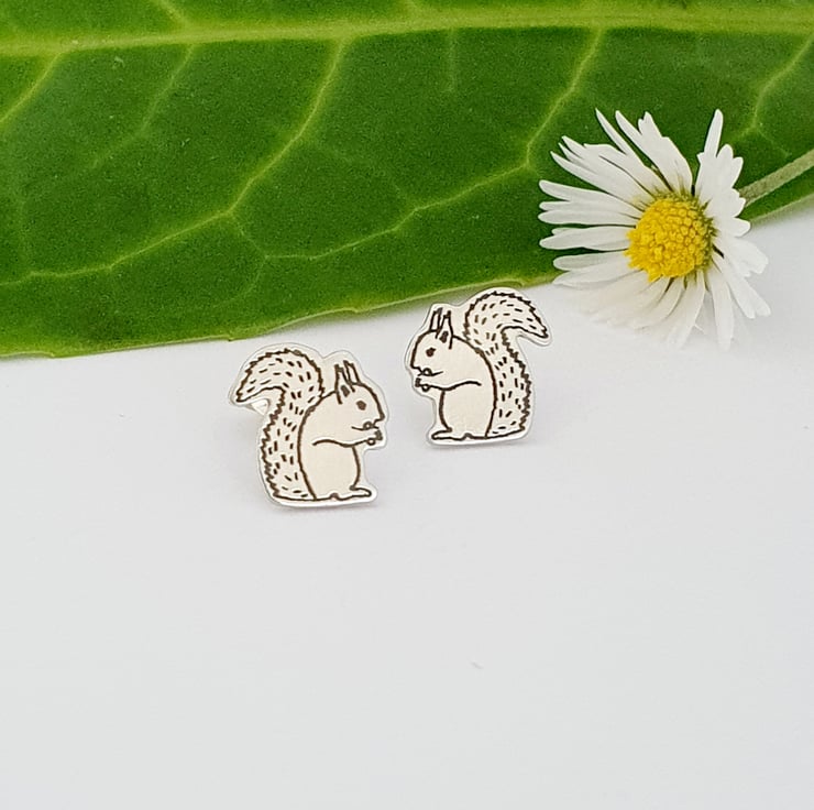 Squirrel Stud Earrings (Sterling Silver)