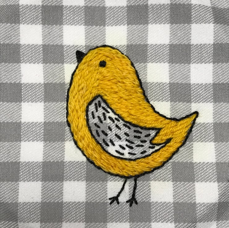 Featuring my signature bird design, hand stitched in yellow hand dyed wool this chirpy little bird will make a lovely, cheerful gift for a friend or a little treat for yourself. Perfect for popping onto a shelf of treasures or to hang on the wall.