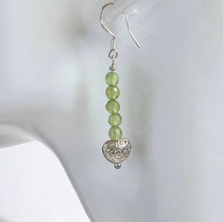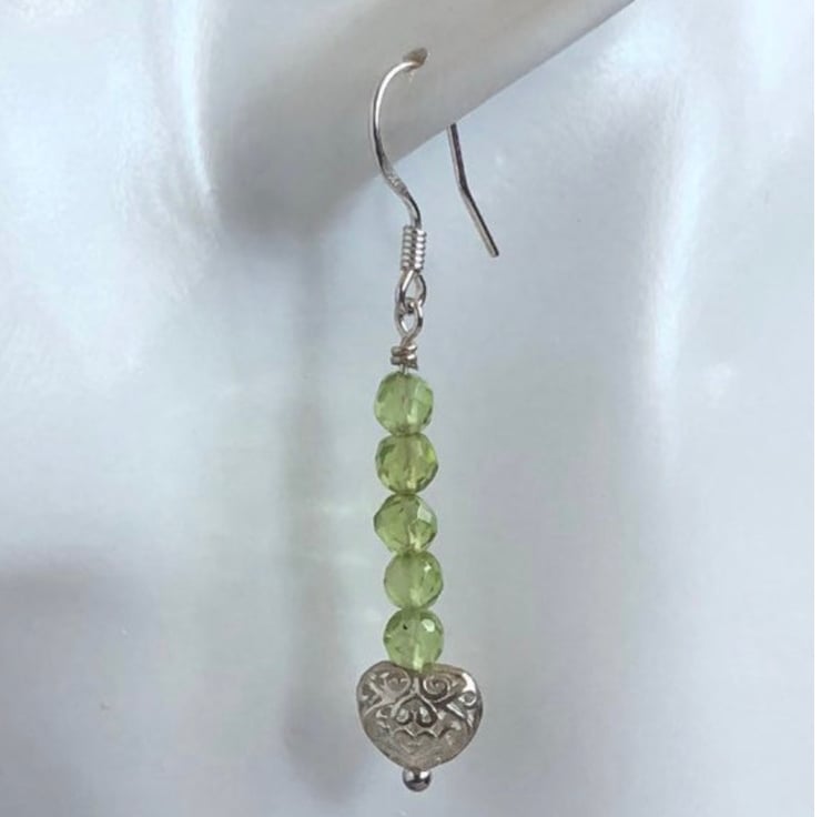 Sterling Silver Peridot Heart Earrings