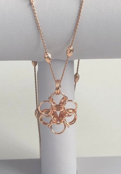 Also included with this design, an 18 inch Sterling Silver Rose Gold plated chain to display the Chainmaille pendant.