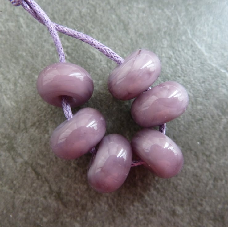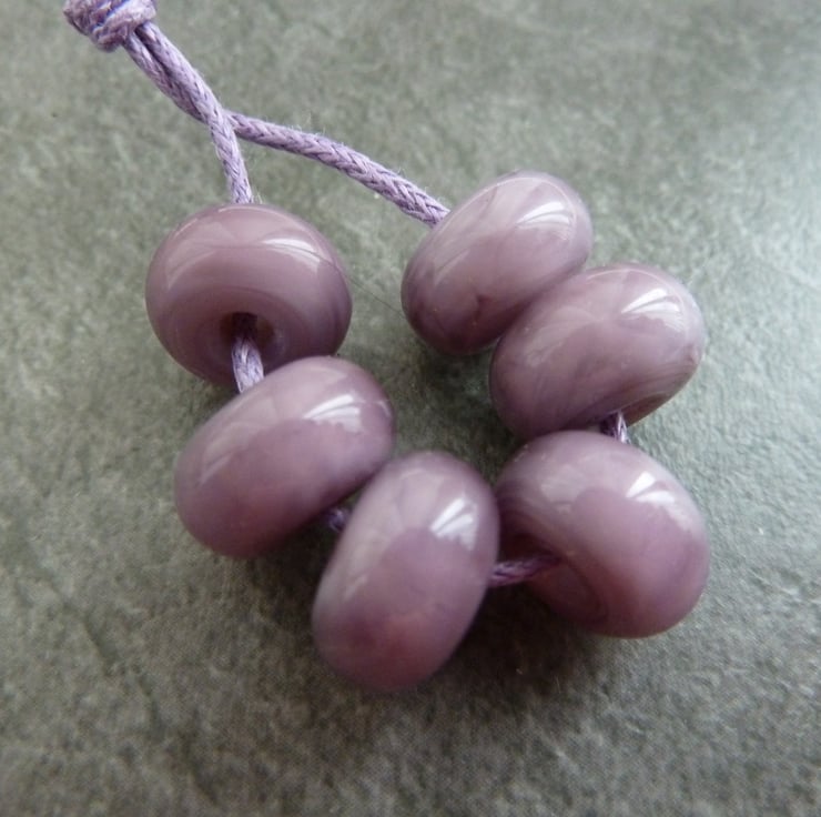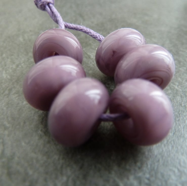 A set of 6 lampwork glass spacer beads made with purple glass.