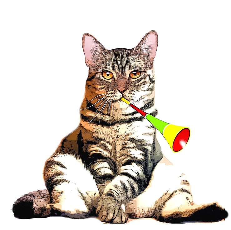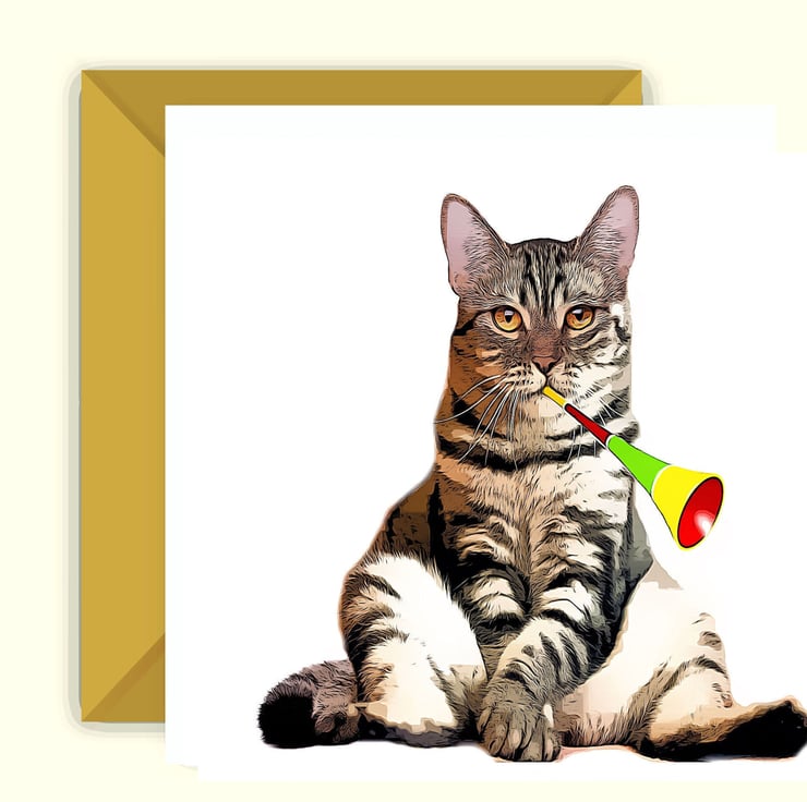 This is a fun Christmas card, of a Fat Cat, blowing a Party Horn. It is also suitable once the Christmas period has finished too, and I will leave it blank inside so you can write your own personal message.