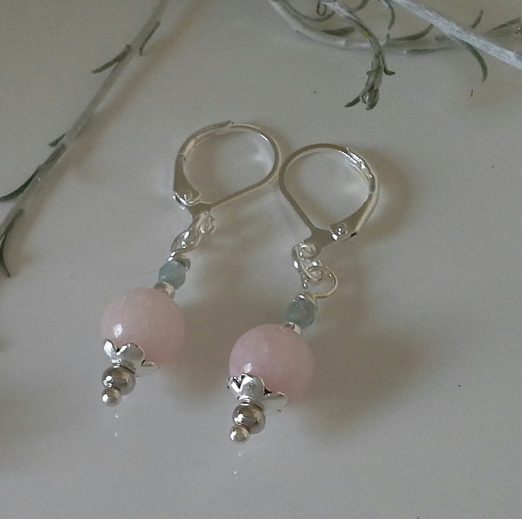 These rose quartz and Paraiba apatite earrings have been designed and hand crafted using 8mm rounds with 3mm faceted apatite round gemstone beads. To compliment them quality silver plated components have been used to keep costs down for those seeking individuality and quality on a budget for gifts or a treat for themselves.