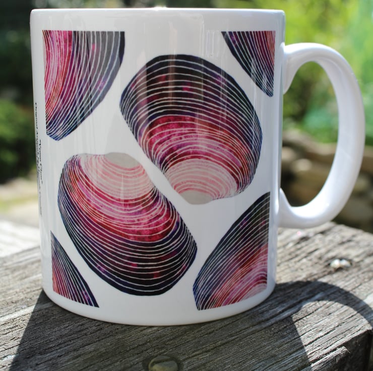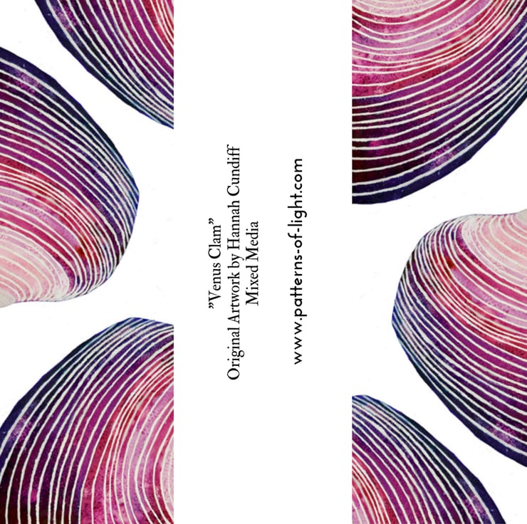 Part of my "Of the Sea" series, I painted the venus clam in the spring of 2019. For the coaster and mug design I mirrored/repeated the shell to give it more interest.