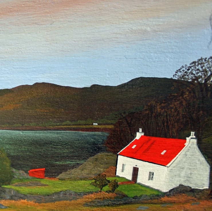 This coaster is taken from a much larger painting I did on slate in 2018. I pass the Wee House (also know as the Red Roof Cottage) each day on my way to work, and it is an iconic wee cottage that is photographed regularly by visitors to the area.