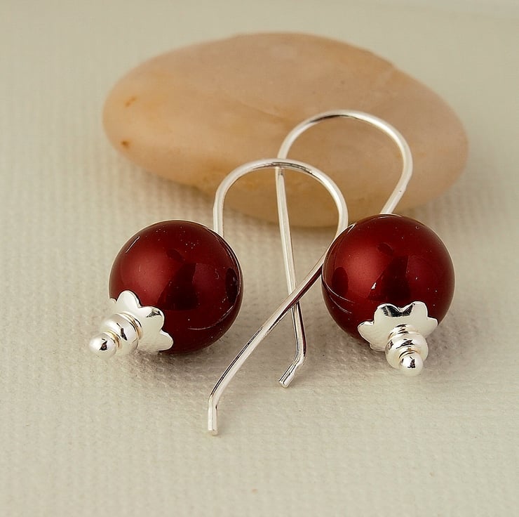 Beautiful earrings featuring Bordeaux Red Swarovski glass pearls.