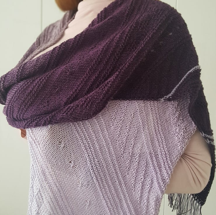 Care: hand wash in warm water with a mild detergent suitable for delicate garments, rinse. No twisting or wringing of the shawl. Roll it in a towel and let the towel absorb water. Spread the shawl flat to dry.