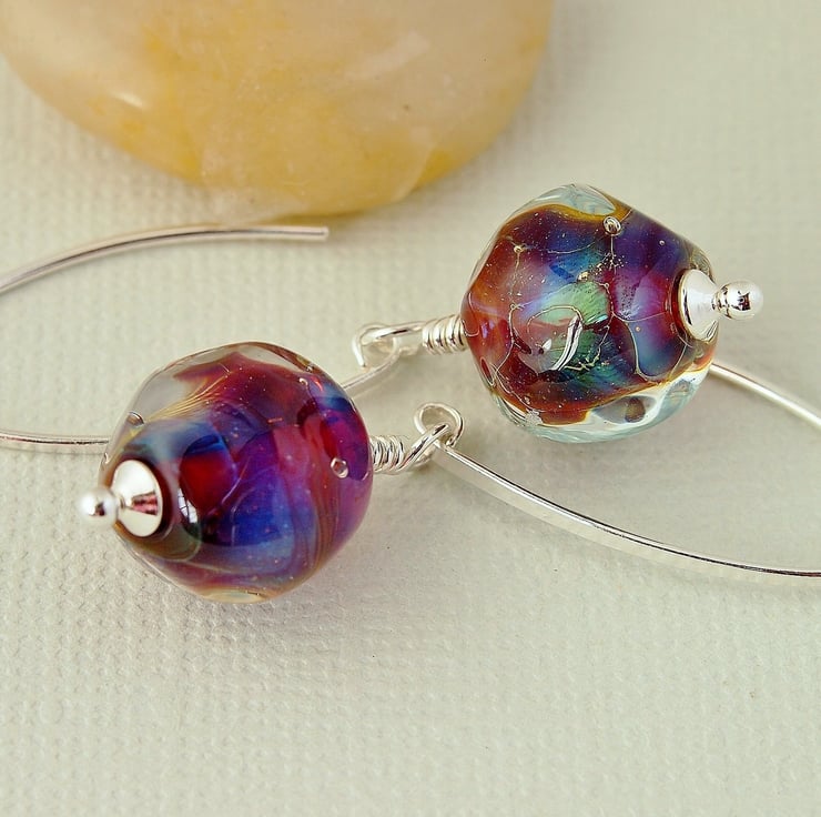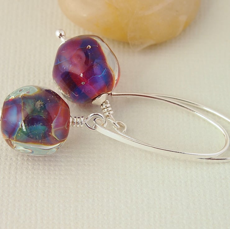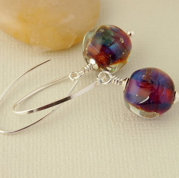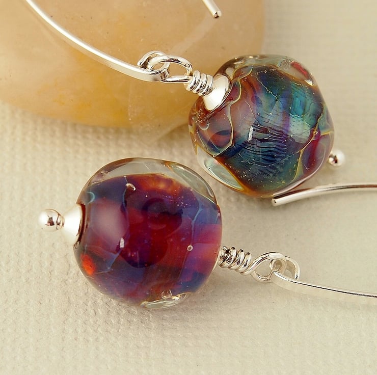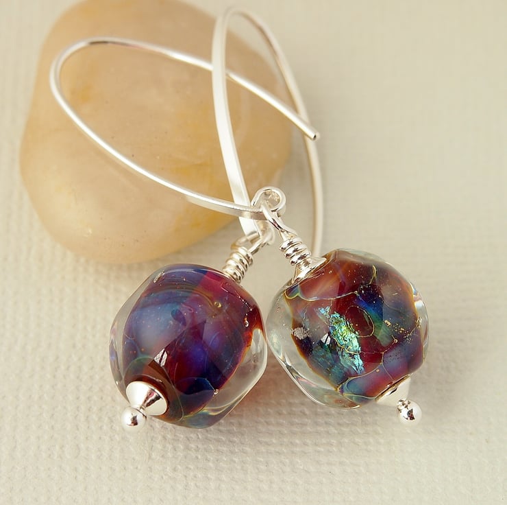 Handmade earrings featuring gorgeous hand shaped nugget lampwork beads by UK artisan