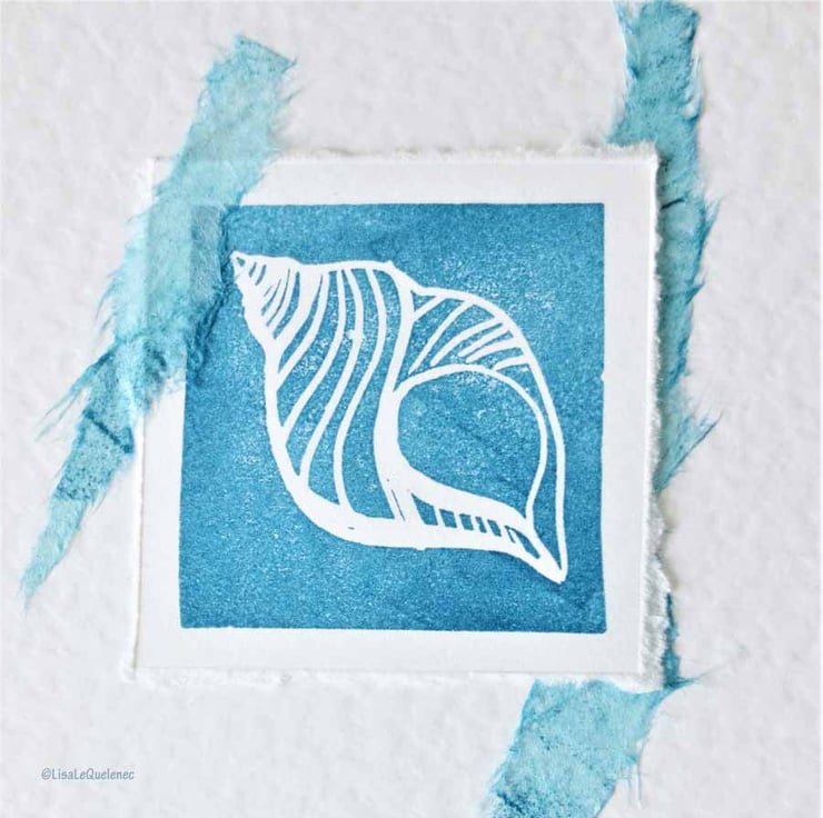 Set of three handmade handprinted art cards of sea shells. Perfect for shell collectors, beachcombers and mermaids everywhere.