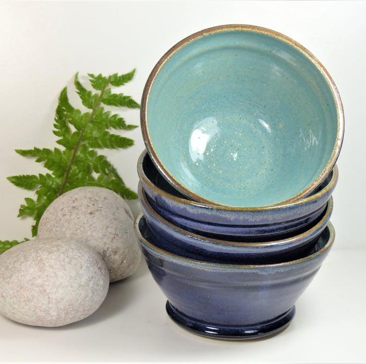 I threw this bowl on the potters wheel using a strong stoneware clay. I then turned the base to make a foot ring. It was then fired to a bisque before being glazed in three contrasting and complimentary glazes and refired to 1220C.