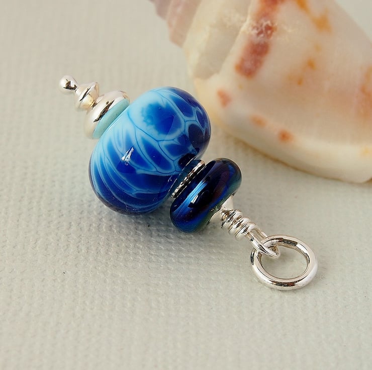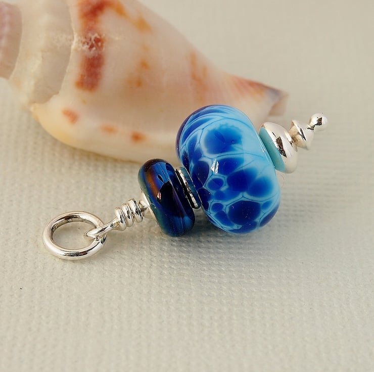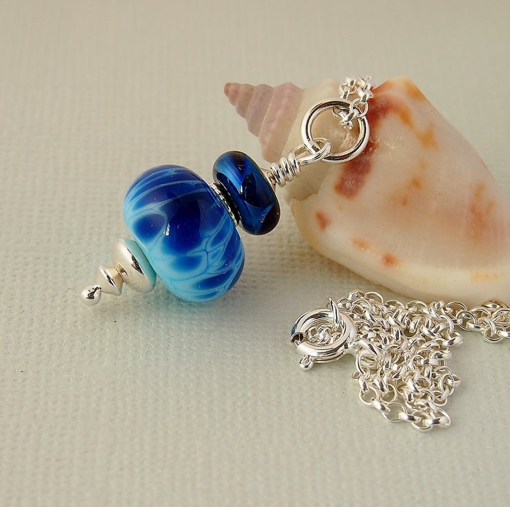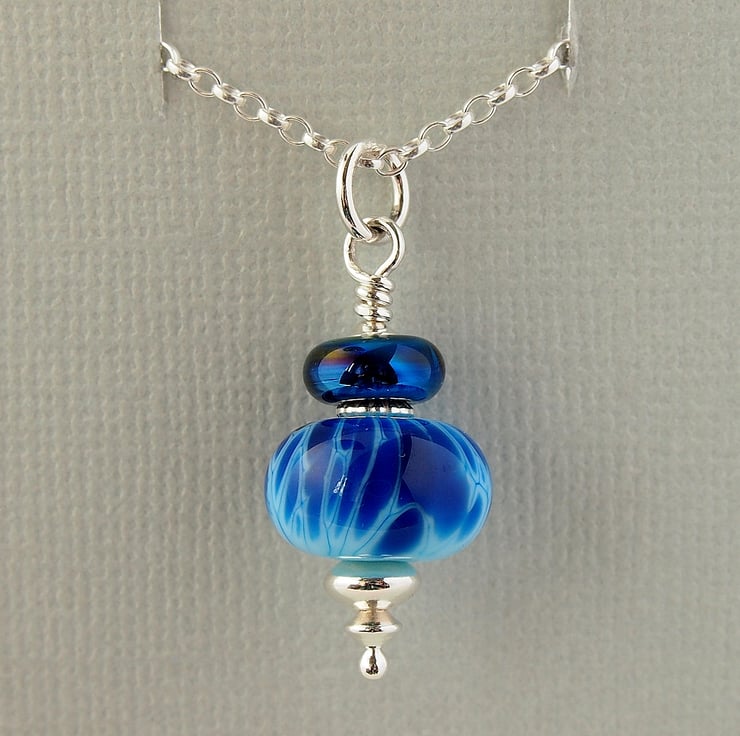 Pretty blue glass pendant featuring lovely lampwork glass beads handmade by UK glass artists.