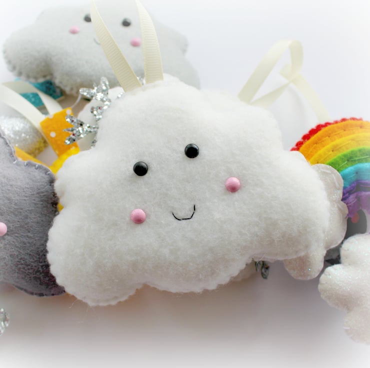 This kit contains everything needed to make your very own felt Weather Garland. A full set of 8 decorations to be used individually or strung along ribbon as a garland.