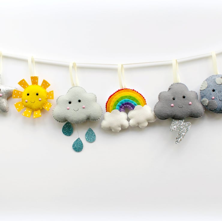 Make Your Own felt Weather Garland Kit. Sewing pattern. DIY Craft. Sew Your Own.