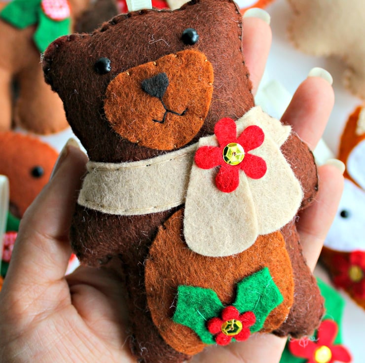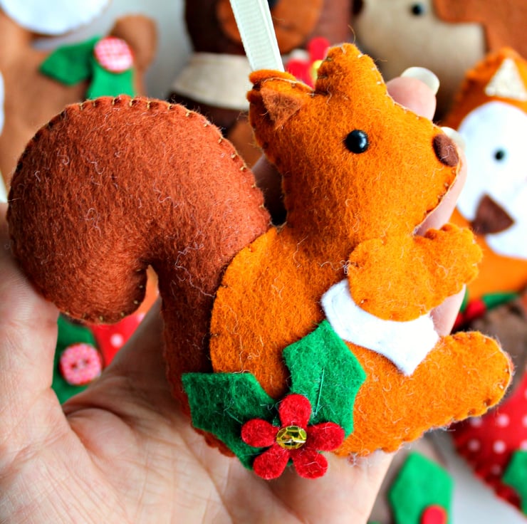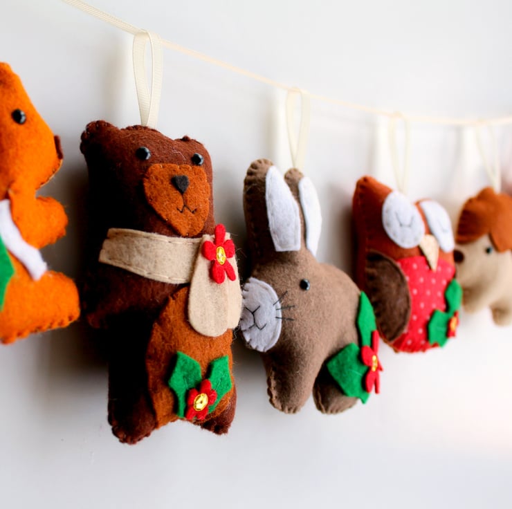 This kit contains everything needed to make your very own felt Christmas Woodland themed Garland. A full set of 8 decorations to be used individually or strung along ribbon as a garland.