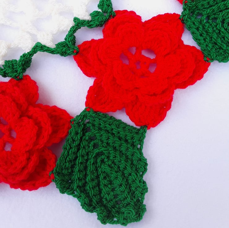 Hand crocheted vintage style doily - red roses - green leaves - table centerpiece - chic home decor - dresser decoration