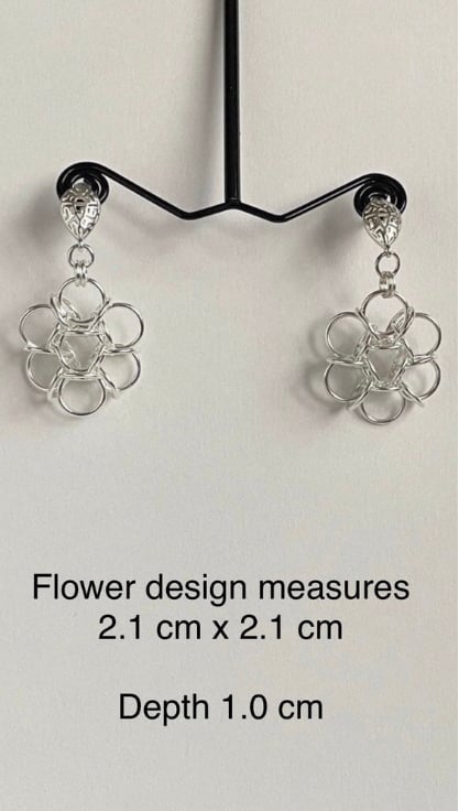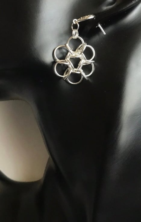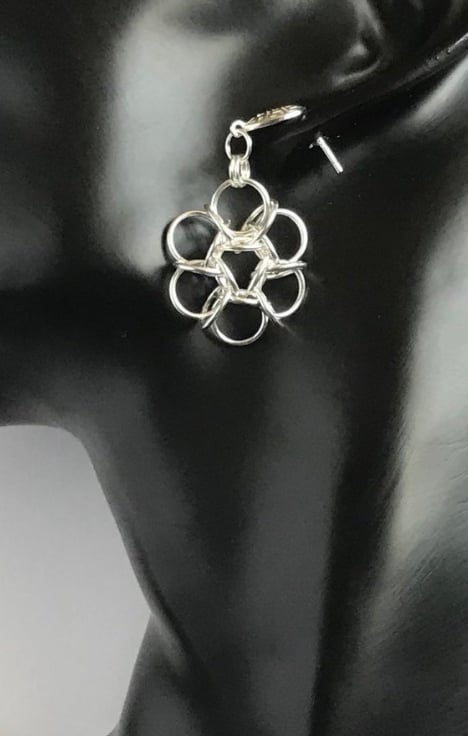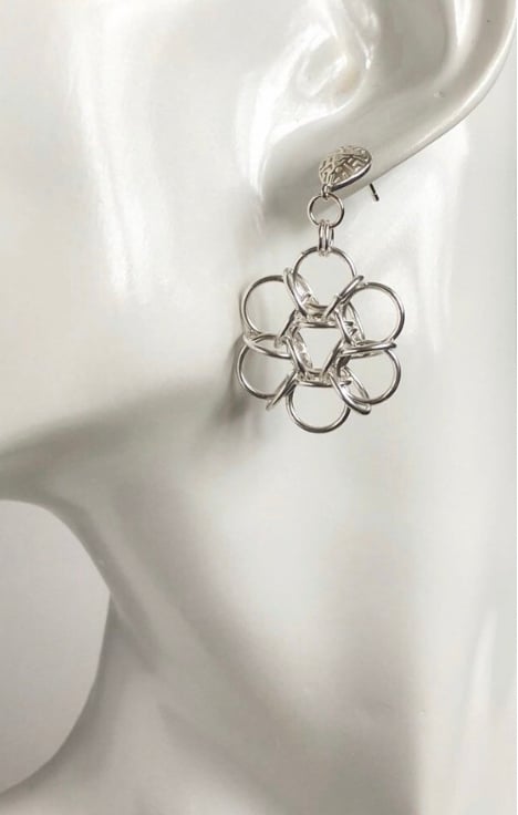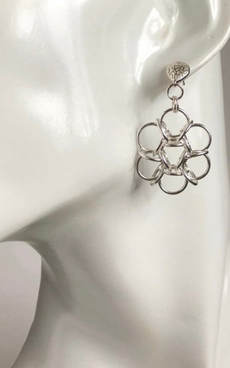 I've interlinked Sterling Silver rings to make these flower Chainmaille earrings with Lattice style earring posts.