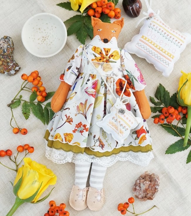 I have wanted to make a tiny fox lady for a while and this is my new pattern. Just love making the animal dolls it takes me straight back to childhood, Beatrix Potter, Racy Helps and The Little Grey Rabbit.xx