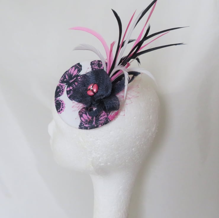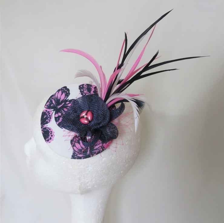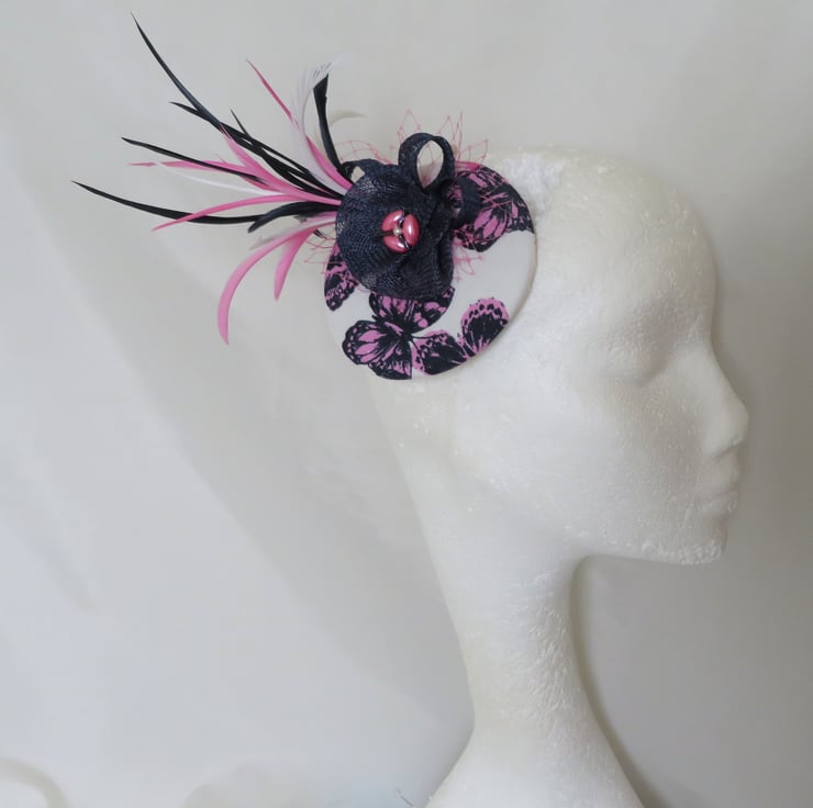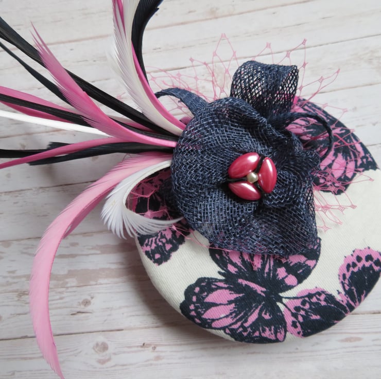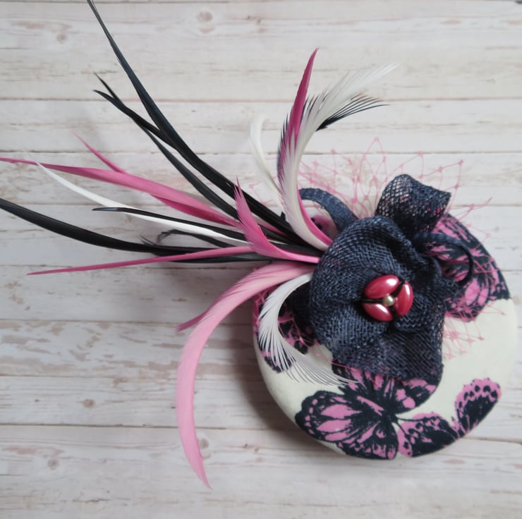 This 'Navy & Fuchsia Pink Flutterby' fascinator mini hat is ready made and can be shipped straight away.