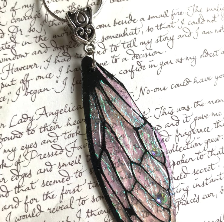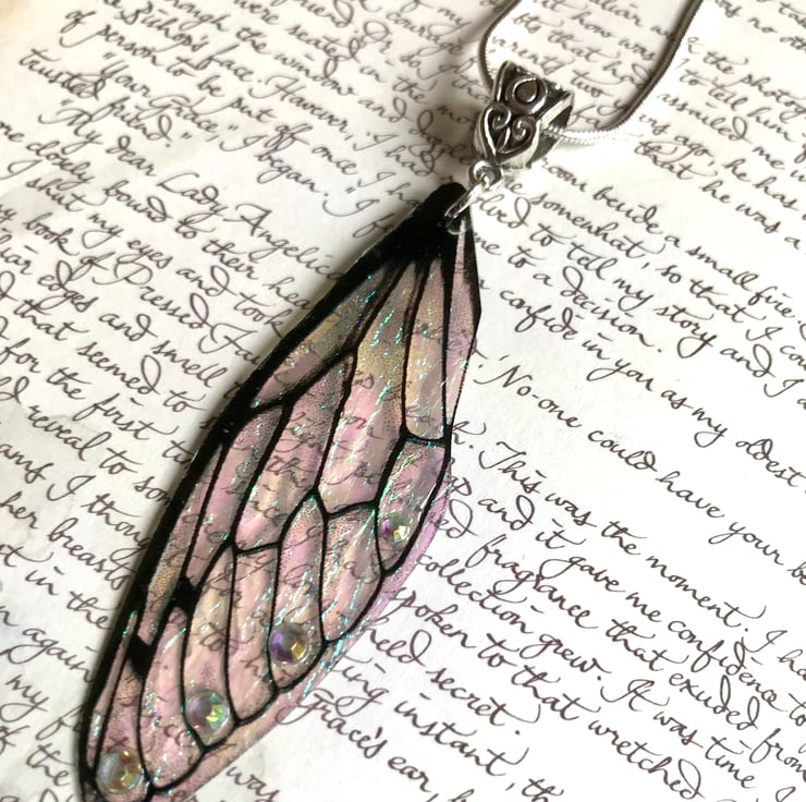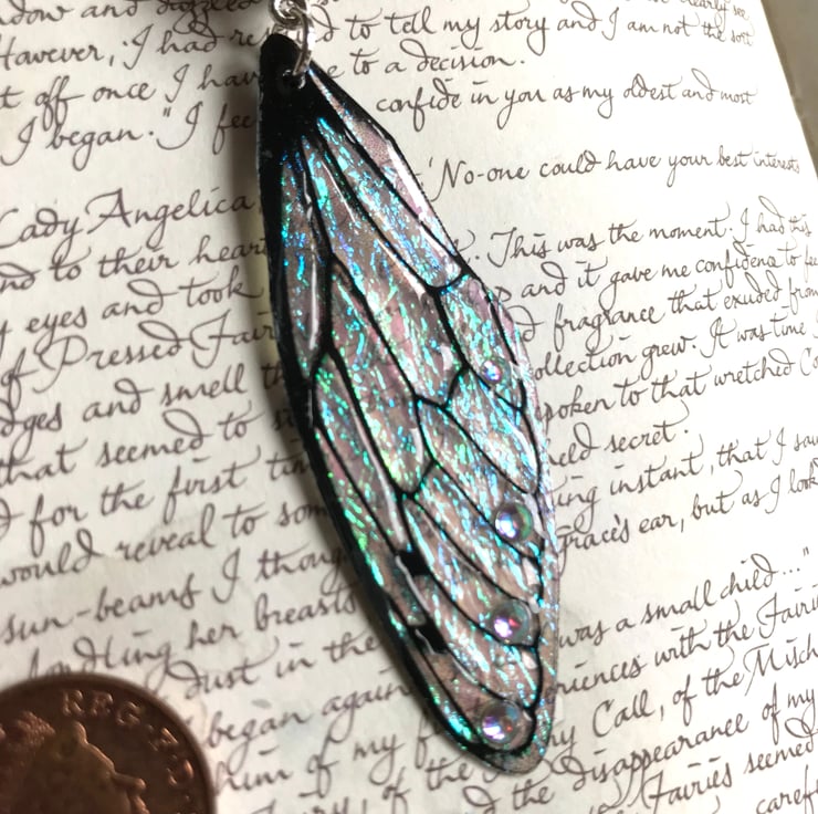 I have added four pretty Aurora Borealis rhinestones to the wing.